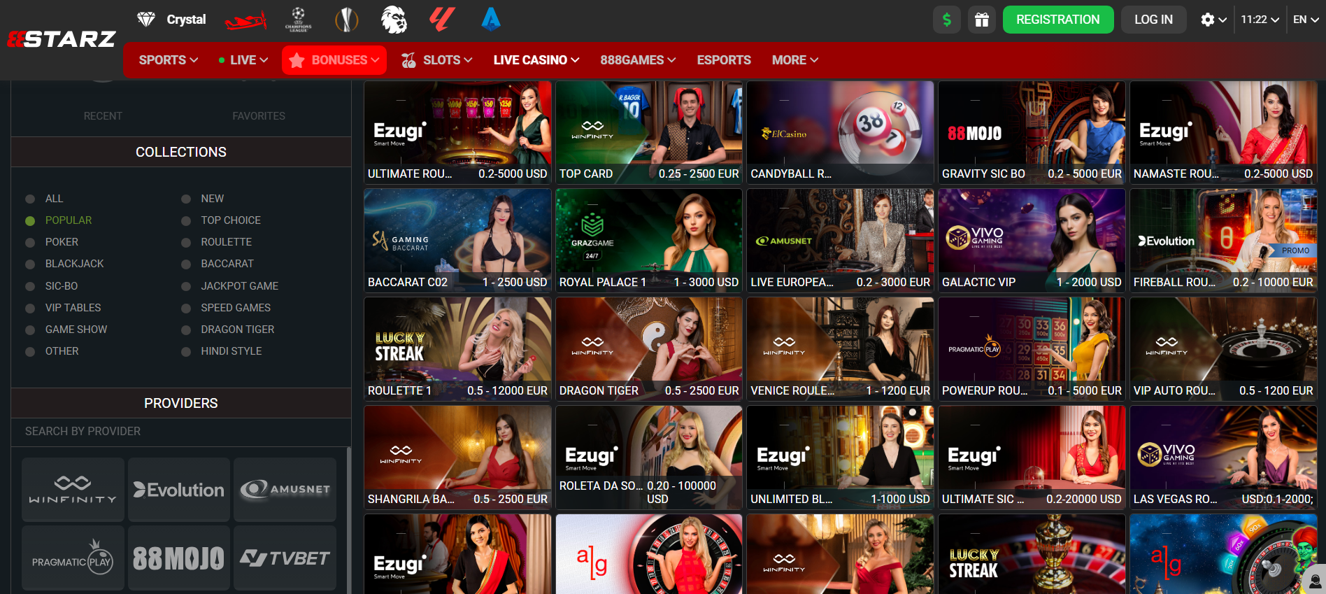 What casino games are available on 888Starz?